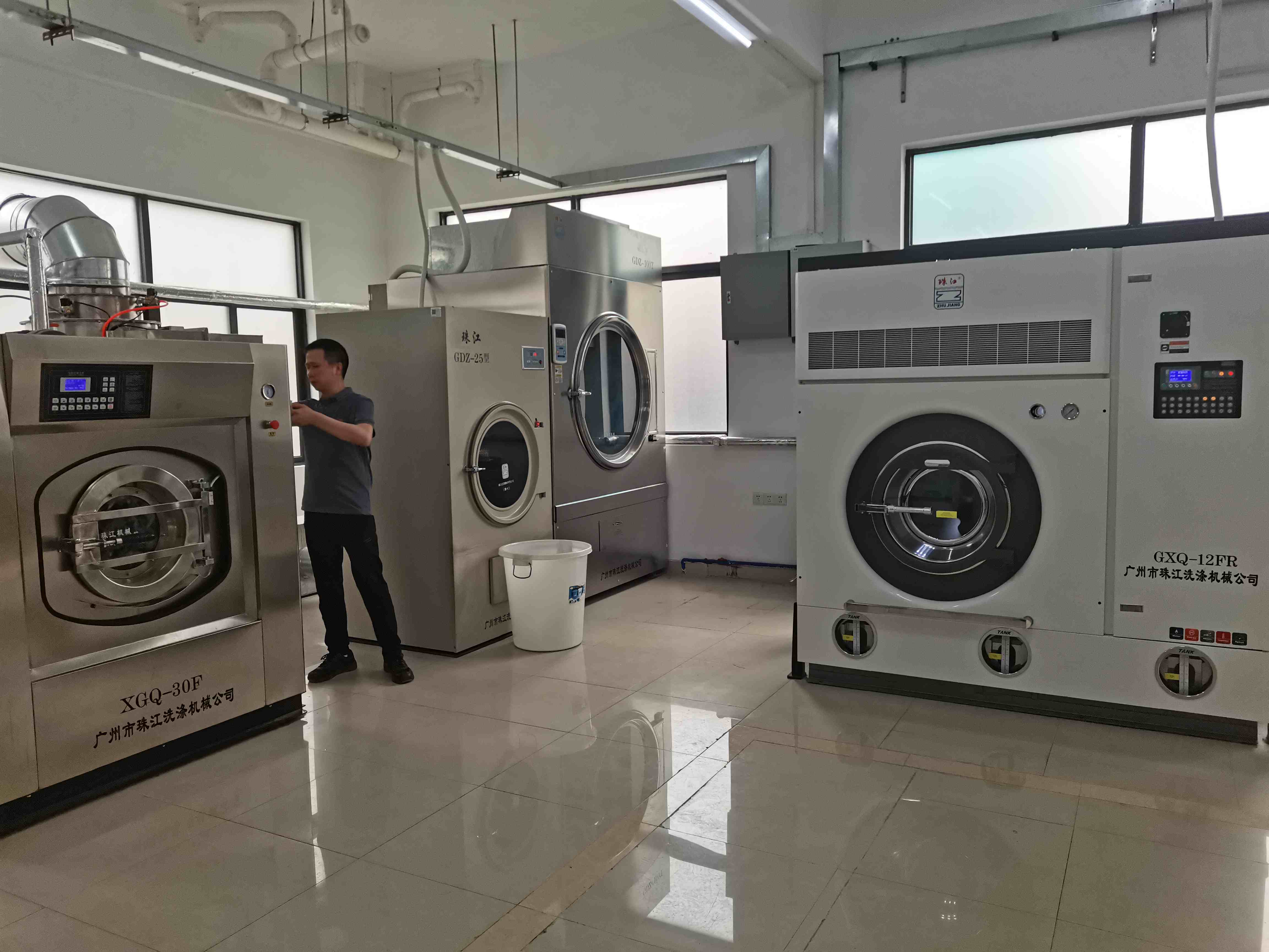 【珠江洗滌服務】:我公司根據客戶的要求,上門勘查場地,丈量場地的尺寸,設計機器擺放的位置和后期水、電、排水、排風的布局圖。做合同,免費送貨,免費安裝機器,調試機器,免費培訓工作人員使用機器。
